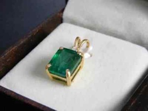 Natural Green Emerald 5Ct Emerald Cut Solitaire Pendant Yellow Gold Plated 18''