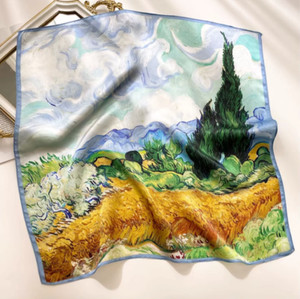 Real Silk Scarf for Ladies Silk Square Scarves Oil painting Cypress