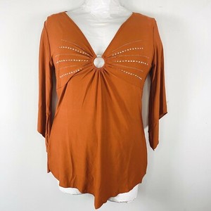 Misses Me Fashion Womens Top sz 3X Orange V Neck Flutter Sleeve Cut Out NEW