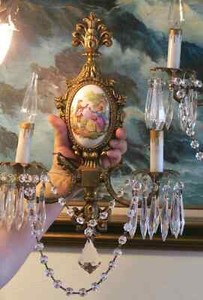 1 Single sconce brass bronze Porcelain Plaque Sevres Limoges French peacock tail