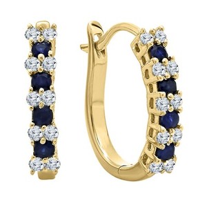 Blue Sapphire & White Diamond Hoop Earrings 14K Yellow Gold Plated Mothers Day