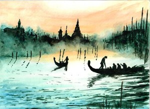 Venice Canal Art Print, Italian Art Print, Venetian Canal Boatman, Venice Italy
