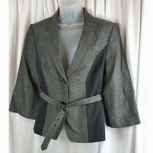 The Limited Collection Gray Tweed Blazer Black Combo Career Belted M 61-18