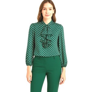 Eva Mendes Green Polka Dot Ruffle Blouse Mock Neck 3/4 Sleeve S Rockabilly 79-51