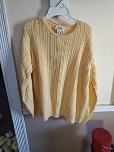 Talbots Sz M Pastel Yellow 100% Cotton Cable Knit Long Slv Pullover Sweater