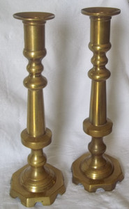 Pair of Vintage Heavy Solid Brass Candlesticks Made in Mexico 13 1/2” Patina