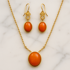 Vintage Hand-Carved Mediterranean, Coral Necklace & Bracelet – Natural Undyed