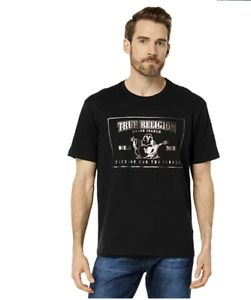 True Religion Mens Short Sleeve Relaxed Srs Tee XXL Jet Black World Tour Graphic