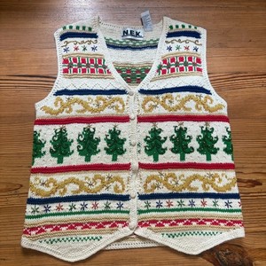 N.E.K. vintage Christmas holiday knit beaded womens vest SIZE L