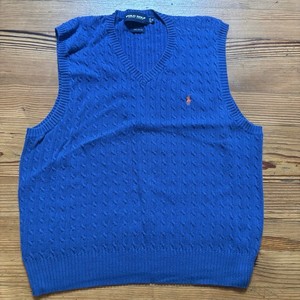 Polo Golf royal blue cotton cable knit mens pullover vest SIZE M