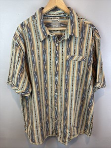 True Grit Short Sleeve Camp Shirt Aztec Geometric Print Size XXL