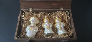 Vintage Lauscha Glass Angel Christmas Ornament Made In Poland W/Wooden Case