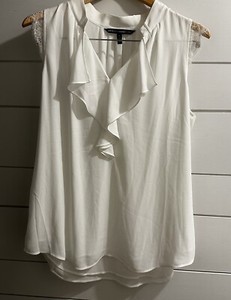 White House Black Market White Sleeveless Ruffle Neck Shirt Womens Size L