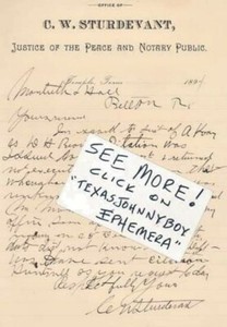 1894 LETTER Charles W STURDEVANT TEMPLE TEXAS NOTARY PUBLIC Justice Of The Peace