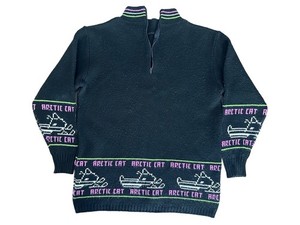 Vintage Arctic Cat Wear Snowmobile Racing Sweater 1/4 Zip Black Graphic Purple