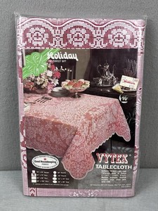 VintageDeadstock VYTEX Tablecloth French Lace Look Vinyl Table Cover Red 52”x72”