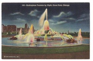 Night CLARENCE BUCKINGHAM MEMORIAL FOUNTAIN Grant Park Chicago Illinois Postcard