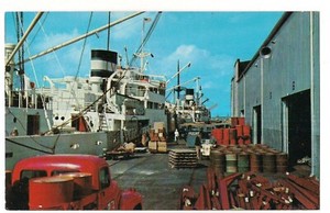 DOCK SCENE Ships Boats Red Truck Barrels New Orleans Louisiana LA Postcard