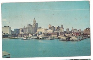 BALTIMORE UPPER HARBOR Skyline Maryland MD Postcard Linen 1944
