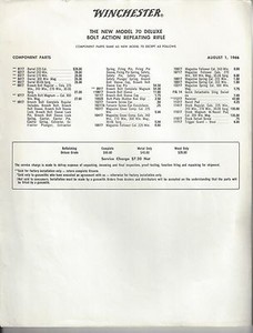 Winchester Model 70 Deluxe Component Parts List - August 1, 1966