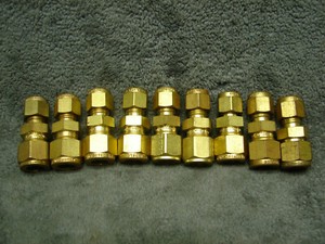 9 pc Brass Swagelok Crawford 1/4" OD x 3/8" OD Tube Union Compression Fitting