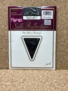Vintage Hanes Silky Sheer Barely Black Sandalfoot Pantyhose Silk 1988