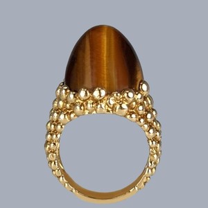 Vintage Kutchinsky Tiger’s Eye Ring 18ct Gold 1970s London Cocktail Statement