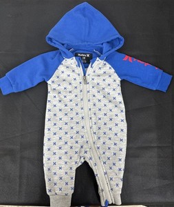 Hurley Baby Boys Hoodie Romper Outfit One Piece Adorable Blue Gray Infant 3M