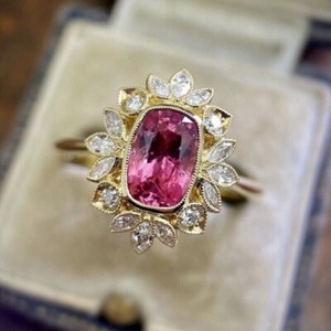 2Ct Lab-Created Pink Diamond Vintage Halo Engagement Ring 14K White Gold Finish