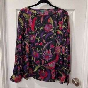 Lauren Ralph Lauren Striped Bell Sleeve Tie Top Cotton Blend Nautical Size S