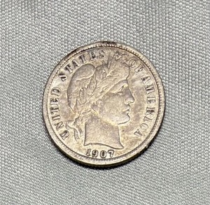 1907-S Silver Barber Dime, VF Details, Cleaned