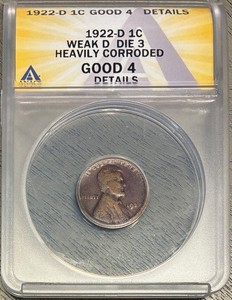 1922-D Weak D Lincoln Cent (Wheat Penny), Die 3, ANACS G-4 Details, Corroded