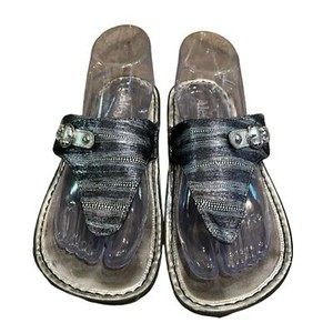 Alegria Vanessa Circulate Black Silver Thong Sandal Shoes Womens Size EU 38