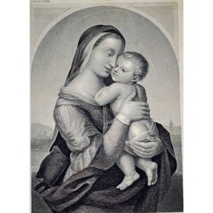 Original 19th Century Engraving - "MADONNA DI CASA" Artist Raphael Sanzio