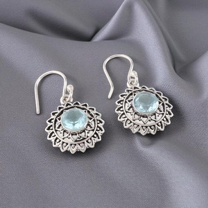Swiss Blue Topaz Gemstone 925 Sterling Silver Jewelry Designer Earrings For Gift