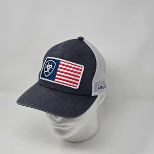 ARIAT Trucker Snapback Hat Cap US Flag Patch Logo Blue White Adjustable OSFM