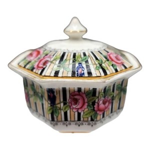 Atq 1920s Paragon China England Lidded Trinket Dish Octagonal Bone China Roses