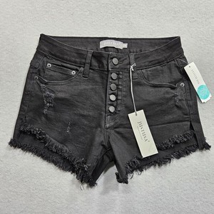 Just USA Cutoff Jeans Shorts Womens 26 Black Button Fly Mid Rise Stretch Frayed