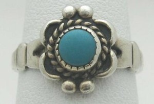 DAINTY SOUTHWESTERN ESTATE HANDCRAFTED TURQUOISE STERLING SILVER RING, SIZE 4.5