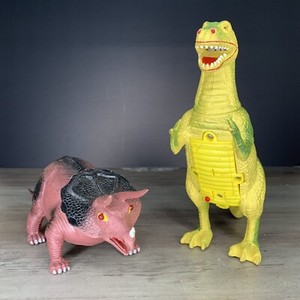 Imperial Dinosaur Lot of 2- T Rex & Triceratops Electronic Lights & Sound Works