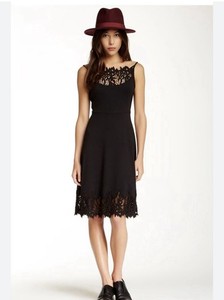 Free People Black Forget Me Not Fit/Flare Stretch Ponte Crochet Eyelet Dress M