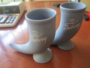 Vintage Tuborg Beer Steins -- Horn Shaped -- Set Of 2 -- Light Blue Color