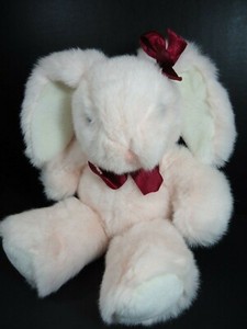 Chosun Vintage Pink Bunny Rabbit Plush Burgundy Bow 15”