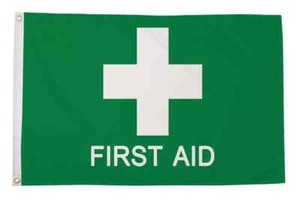 FIRST AID FLAG 5' x 3' Green with White Cross Medical Care Treatment Help Point