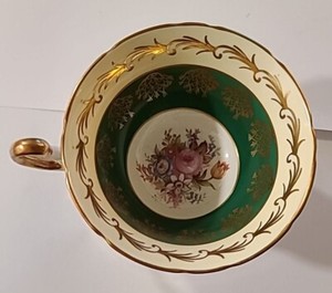 British Foley Bone China Green with Pink Roses & Gold Tea Cup