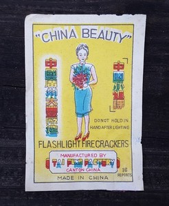 Vintage "China Beauty" Firecracker Paper Label ONLY Tai Fung Factory -Rare-