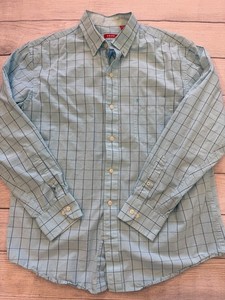 IZOD Shirt Mens Large Blue Windowpane Plaid Button Down Cotton Chest Pocket