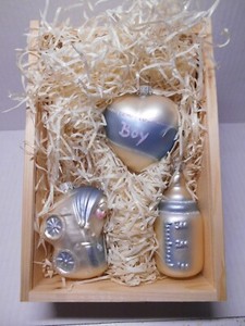 RARE Vintage Blown Glass Blue BABY BOY Christmas Ornament Set Germany