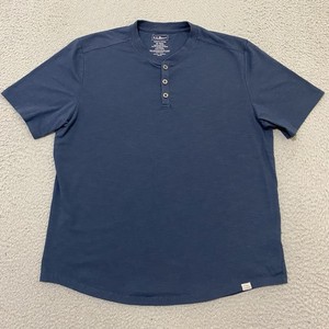 L.L. Bean Shirt Mens M Blue Explorer Slub T Henley Short Sleeve Slightly Fitted
