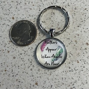 Feathers Appear When Angels Are Near Cute Religious Keychain Key Ring #46692